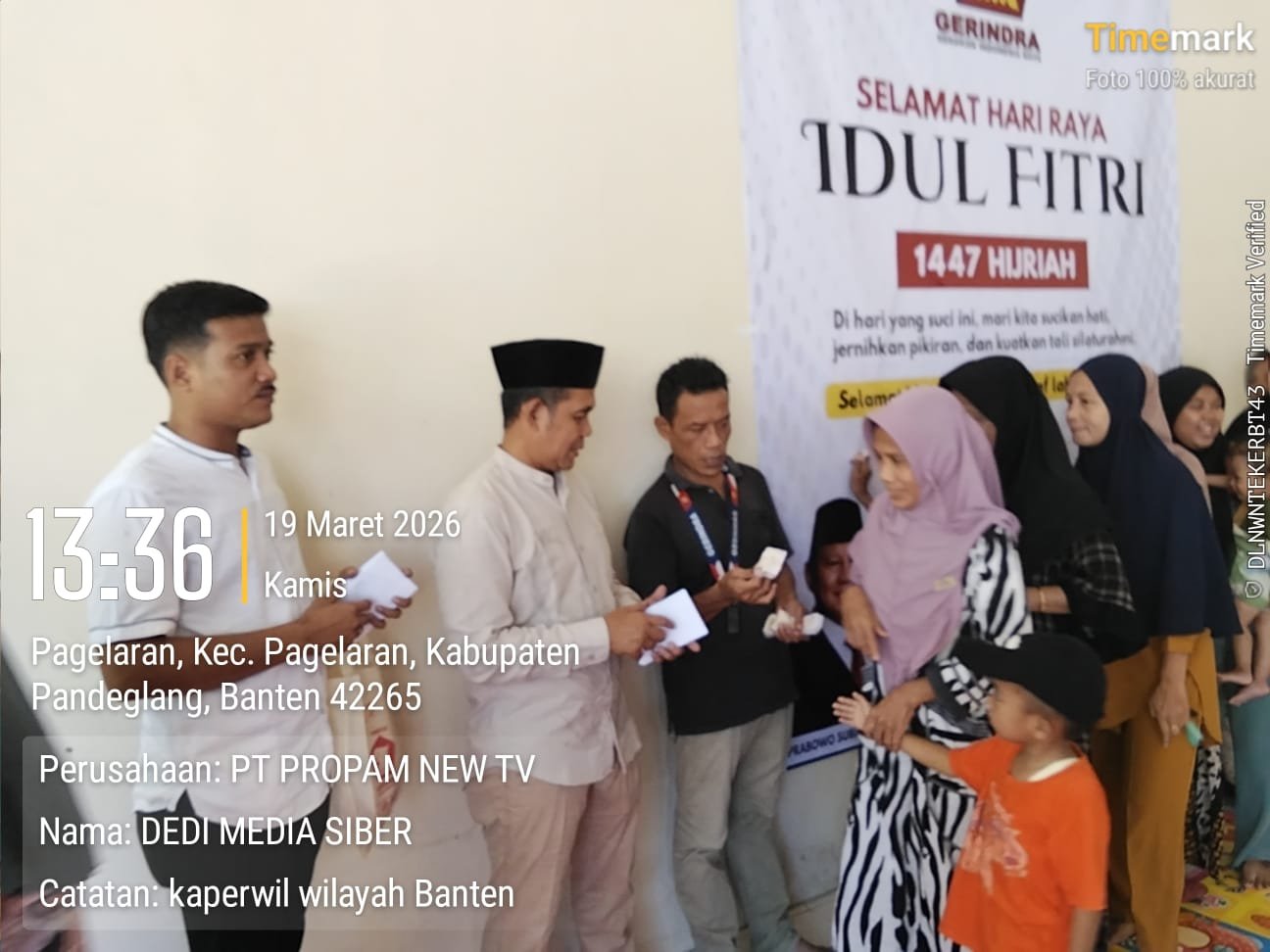 Tridayanews.id | Pandeglang – Menjelang Hari Raya Idul Fitri, semangat berbagi dan kepedulian sosial semakin terasa di tengah masyarakat. Momentum bulan suci Ramadan dimanfaatkan oleh Anggota DPRD Kabupaten Pandeglang dari Partai Gerindra, TB Udi Juhdi, untuk menggelar kegiatan sosial berupa pembagian zakat kepada masyarakat, Kamis (19/3/2026).