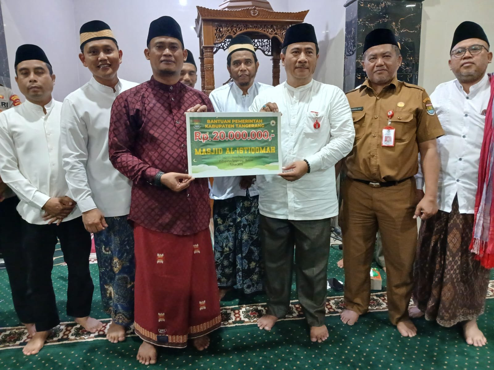 Tridayanews.id | Kabupaten Tangerang – Masjid Al-Istiqomah yang berlokasi di Kampung Dungusmalang RT 003/003, Desa Pasir Muncang, Kecamatan Jayanti, menerima bantuan Program Tarawih Keliling (Tarling) berupa dana hibah sebesar Rp20 juta dari Pemerintah Kabupaten Tangerang, Senin (23/02/2026).
