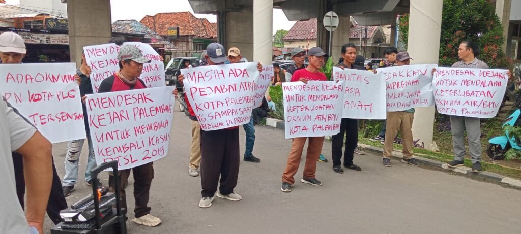 “Merespon tentang Putusan Pengadilan Negeri Kelas 1A Palembang. terkait Penetapan terdakwa Sdr. Ahmad Zairil dan Yoke yang di kenakan sangkaan Gratifikasi dan bagi-bagi tanah oleh oknum ATR/BPN Kota Palembang dalam Program Pendaftaran Tanah Sistematis Lengkap (PTSL) Tahun 2019, Perintah Pengadilan Kelas IA Palembang untuk mendalami Kasus Gratifikasi dan Dugaan memperkaya diri dan orang lain dengan tujuan bagi-bagi Tanah di Kelurahan Karya Jaya Dalam Wilayah Kota Palembang,”ujar Bung Mukri AS dalam orasinya.