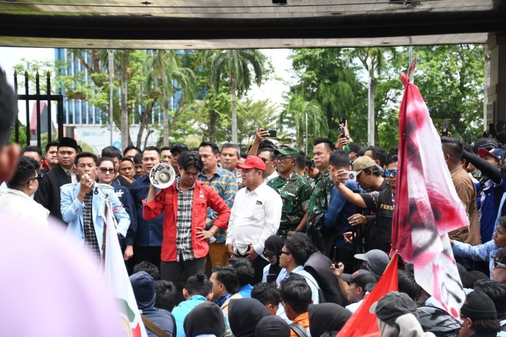 Palembang – Danrem 044/Gapo Brigjen TNI Adri Koesdyanto turun langsung menyaksikan aksi menyampaikan pendapat secara damai, yang berlangsung di Gedung DPRD Prov. Sumsel Jl. Kapten A. Rivai Kota Palembang, Senin (1/9/2025).