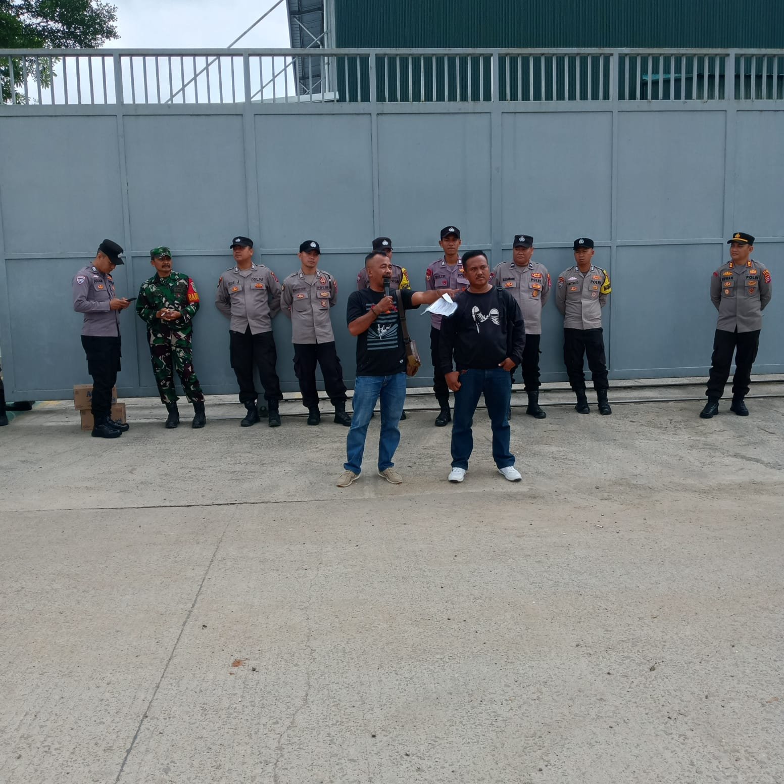 Massa mulai memadati gerbang perusahaan sejak jam 9 pagi, menuntut agar pihak PT SMP. PT SMA dan perusahaan outsourcing bertanggung jawab atas PHK yang dinilai tidak sesuai prosedur.