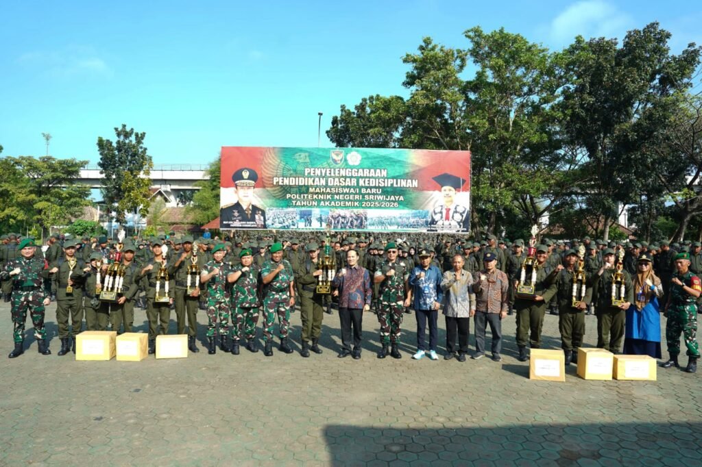 Pangdam II/Sriwijaya Mayjen TNI Ujang Darwis, M.D.A., diwakili Irdam II/Sriwijaya Brigjen TNI Yudha Fitri, secara resmi menutup Pendidikan Dasar Kedisiplinan (Diksarlin) Gelombang – I Bagi Mahasiswa/Mahasiswi Baru Politeknik Negeri Sriwijaya (Polsri) Tahun Akademik 2025/2026, bertempat di Lapangan Mako Jasdam II/Sriwijaya, Km 9 Palembang, Sabtu (02/08/2025).