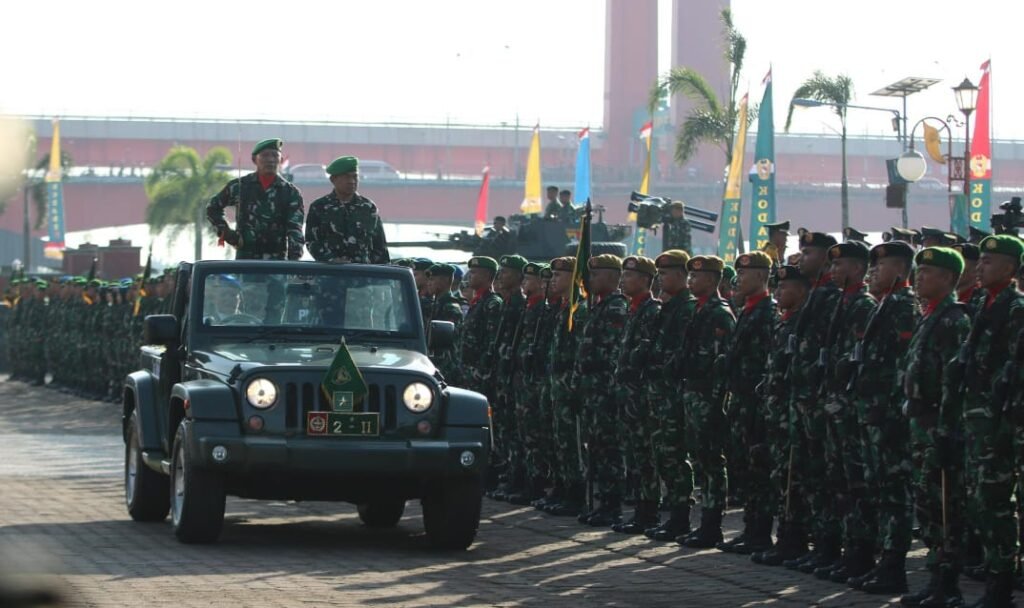 Kasdam II/Sriwijaya, Brigjen TNI Iwan Ma’ruf Zainudin, S.E., bertindak sebagai Inspektur Upacara (Irup) dalam peringatan Hari Ulang Tahun (HUT) ke-80 Tentara Nasional Indonesia (TNI) yang digelar di pelataran Benteng Kuto Besak (BKB) Palembang, Minggu (5/10/2025). Kegiatan ini berlangsung khidmat dan semarak dengan dihadiri unsur Forkopimda, prajurit TNI-Polri, PNS, pelajar, mahasiswa, serta masyarakat umum.