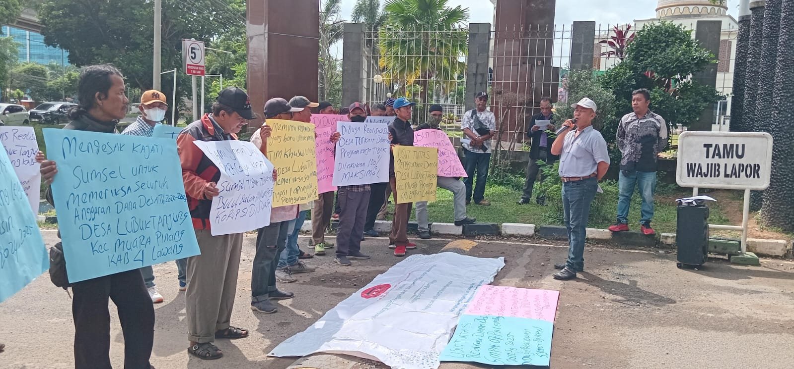 Tridayanews.id | Palembang, – Massa Gerakan Tolak Korupsi Provinsi Sumatera Selatan (Galaksi Sumsel) sambangi Kejaksaan Tinggi Sumatera Selatan (Kejati Sumsel) untuk melakukan aksi unjuk rasa terkait adanya dugaan indikasi penyalah gunaan wewenang serta jabatan dan Dugaan Korupsi Pada Desa Lubuk Tanjung, Kecamatan Muara Pinang Kabupaten Empat Lawang, Sumatera Selatan, Kamis (04/12/25).