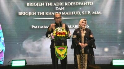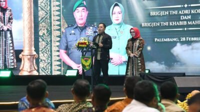 – Suasana haru, hangat dan penuh kekeluargaan mewarnai acara Lepas Sambut Komandan Korem 044/Garuda Dempo yang digelar di Soma Grand Ballroom Kota Palembang, Sabtu (28/2/2026). Bertajuk “Kenanglah Kami”, kegiatan ini menjadi momentum penting pada serah terima jabatan Danrem 044/Gapo dari Brigjen TNI Adri Koesdyanto kepada Brigjen TNI Khabib Mahfud, S.I.P., M.M.