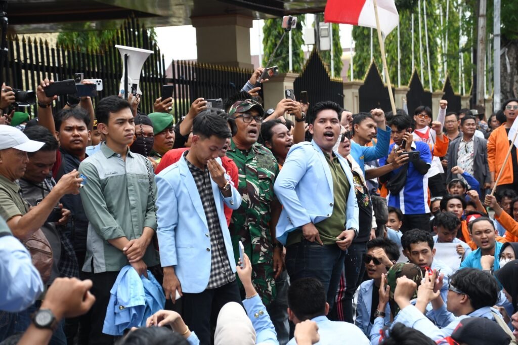Kodam II/Sriwijaya bersama Polda Sumsel melaksanakan pengamanan unjuk rasa yang berlangsung di depan Gedung Dewan Perwakilan Rakyat Daerah (DPRD) Provinsi Sumatera Selatan (Sumsel). Senin (01/09/2025). Dengan pendekatan humanis dan persuasif, unjuk rasa yang melibatkan ribuan massa ini dapat berjalan tertib dan damai hingga selesai.