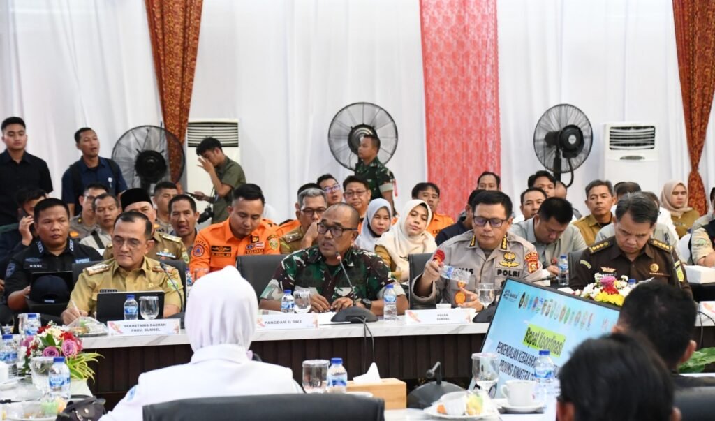 Palembang – Komandan Korem 044/Garuda Dempo Brigjen TNI Adri Koesdyanto hadir pada rapat pengendalian kebakaran hutan, kebun dan lahan Provinsi Sumatera Selatan Personil Tahun 2025, bertempat di Ruang Rapat Griya Agung Jl. Demang Lebar Daun Kota Palembang, Selasa (29/7/2025).