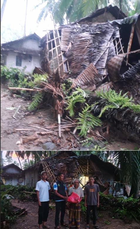 Rumah milik Jaya mengalami kerusakan setelah tertimpa pohon kelapa tumbang. Dalam kunjungan tersebut, tim memberikan bantuan sebagai wujud kepedulian sekaligus dukungan moral maupun material.