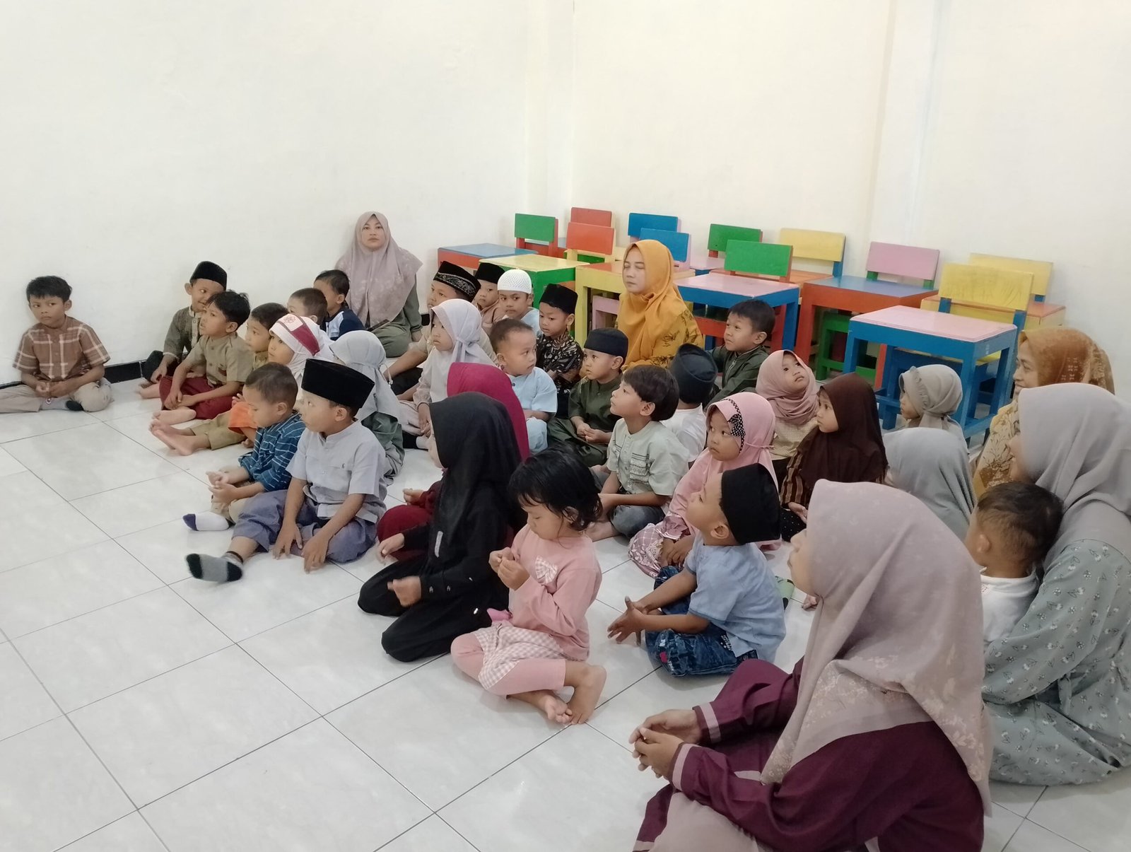 Murid-murid duduk berbaris rapi di depan televisi, menonton demonstrasi solat seperti takbir, rukuk, sujud, serta i’tidal dengan gerakan yang tepat, sehingga kegiatan ini bukan hanya menanamkan ilmu sholat secara benar sejak dini, tapi juga memperdalam dan mengajarkan kepada murid-murid bahwa solat adalah tiang agama.