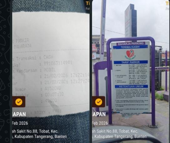Tridayanews.id | Kabupaten Tangerang – Pengelolaan parkir di RSUD Balaraja menjadi sorotan publik. Pasalnya, seorang pengunjung mengaku dikenakan biaya parkir sebesar Rp4.000 meski belum satu jam memarkirkan kendaraannya, Sabtu (21/02/2026).