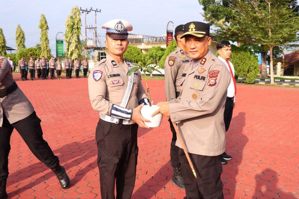 Peduli Personel dan Lingkungan, Kapolres Rohil Beri Hadiah Bibit Pohon Ke Personil Berulang Tahun