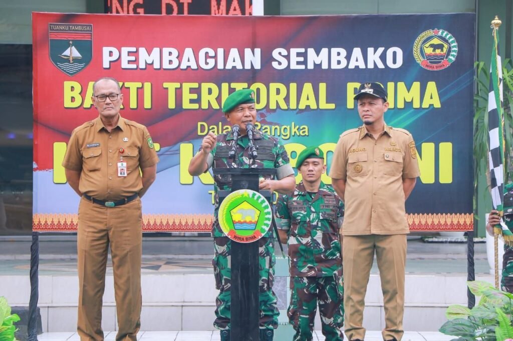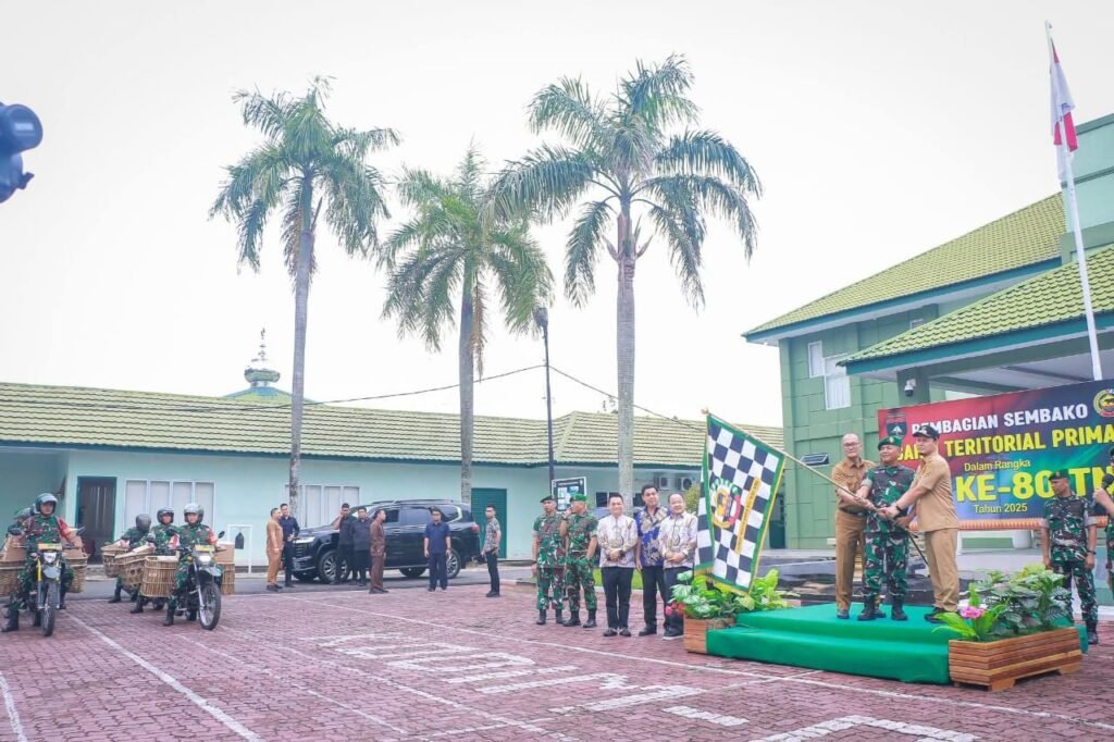 – Dalam rangka memperingati Hari Ulang Tahun ke-80 Tentara Nasional Indonesia tahun 2025, Korem 031/Wira Bima melaksanakan kegiatan bakti sosial dengan membagikan sebanyak 500 paket sembako kepada masyarakat yang membutuhkan, Selasa 9/9/2025