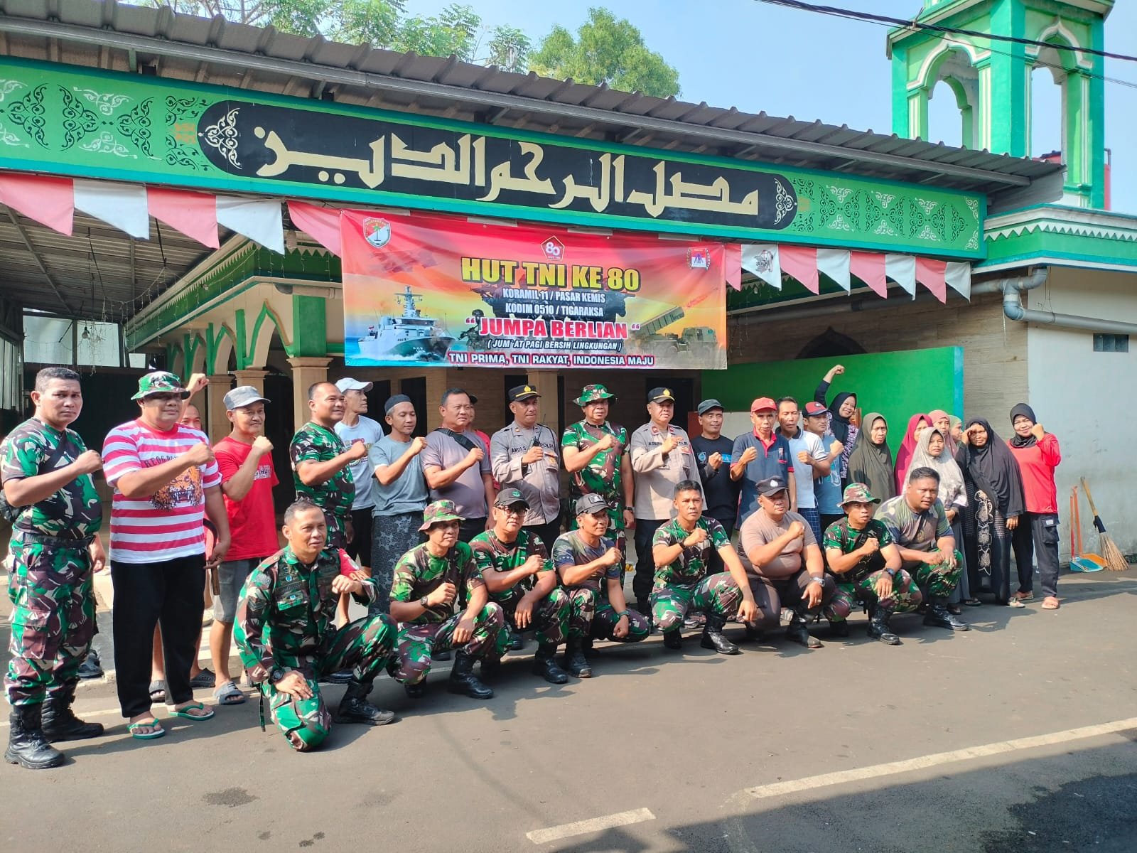 Tridayanews.id | Kabupaten Tangerang – Dalam rangka memperingati HUT TNI Ke-80 tahun 2025, Komandan Koramil 11/Pasar Kemis Mayor Arm Sidik AY. memimpin langsung anggotanya mencanangkan program “Jumpa Berlian” (Jumat Pagi Bersih Lingkungan) dengan aksi bersih-bersih rumah ibadah di wilayah teritorial Koramil 11/Pasar Kemis, Jum’at (26/09/2025).