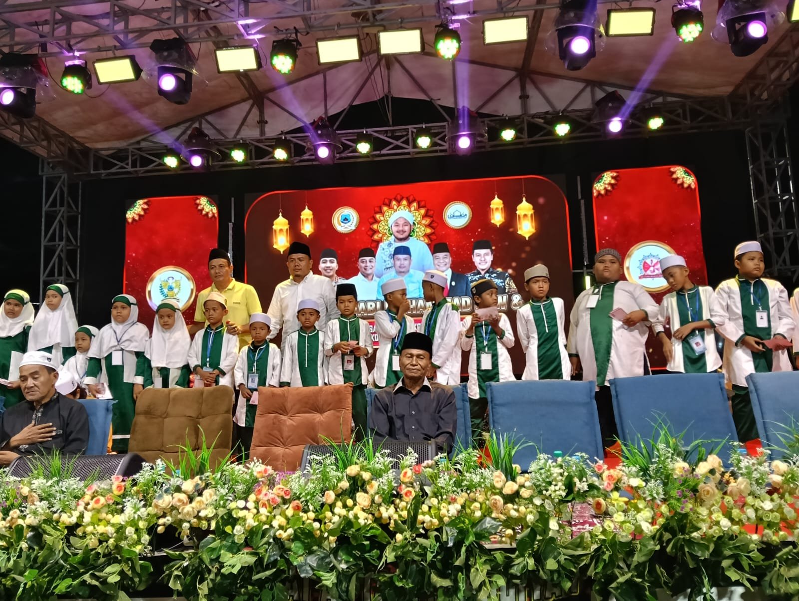 Panggung besar dengan hiasan lampu dan layar LED menambah khidmat serta semarak jalannya peringatan Maulid Nabi Muhammad SAW. Secara keseluruhan, acara berjalan dengan lancar, aman, dan sukses hingga akhir.(di)