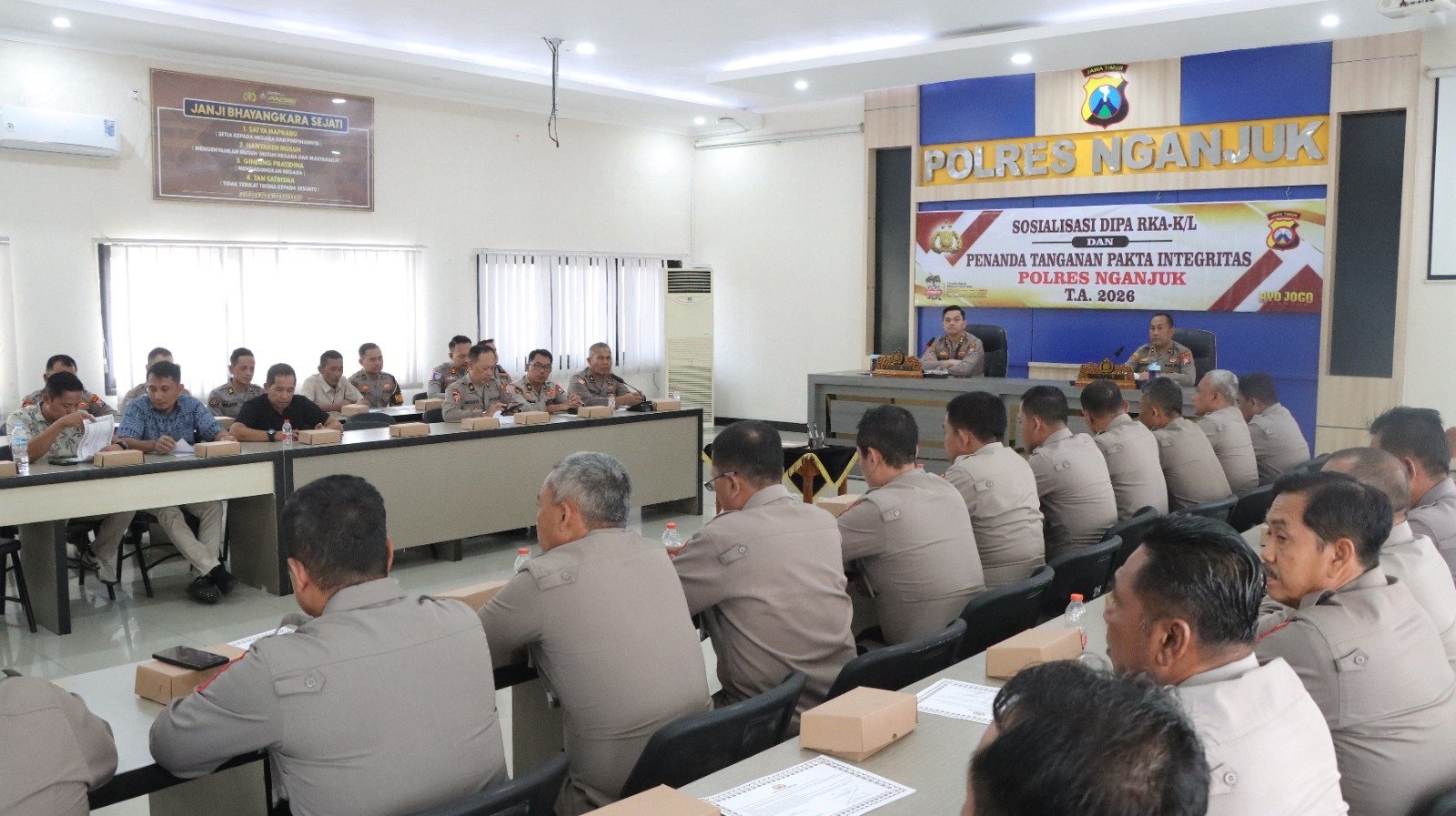 Kapolres Nganjuk AKBP Suria Miftah Irawan menegaskan bahwa penandatanganan Pakta Integritas bukan sekadar formalitas, melainkan wujud tanggung jawab moral dan institusional dalam mengelola anggaran negara.