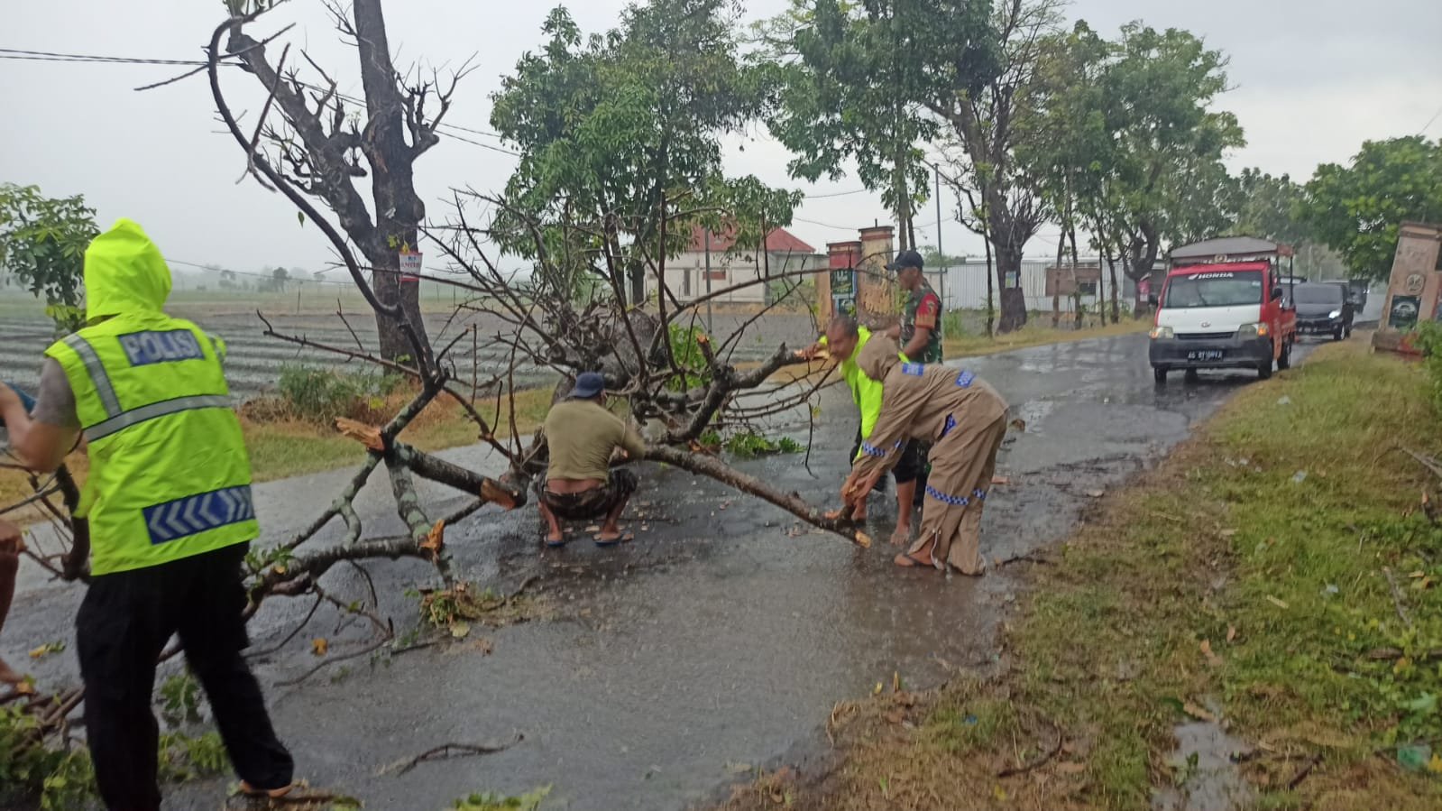 Polisi Sigap Tangani Pohon Tumbang di Jalan Raya Rejoso