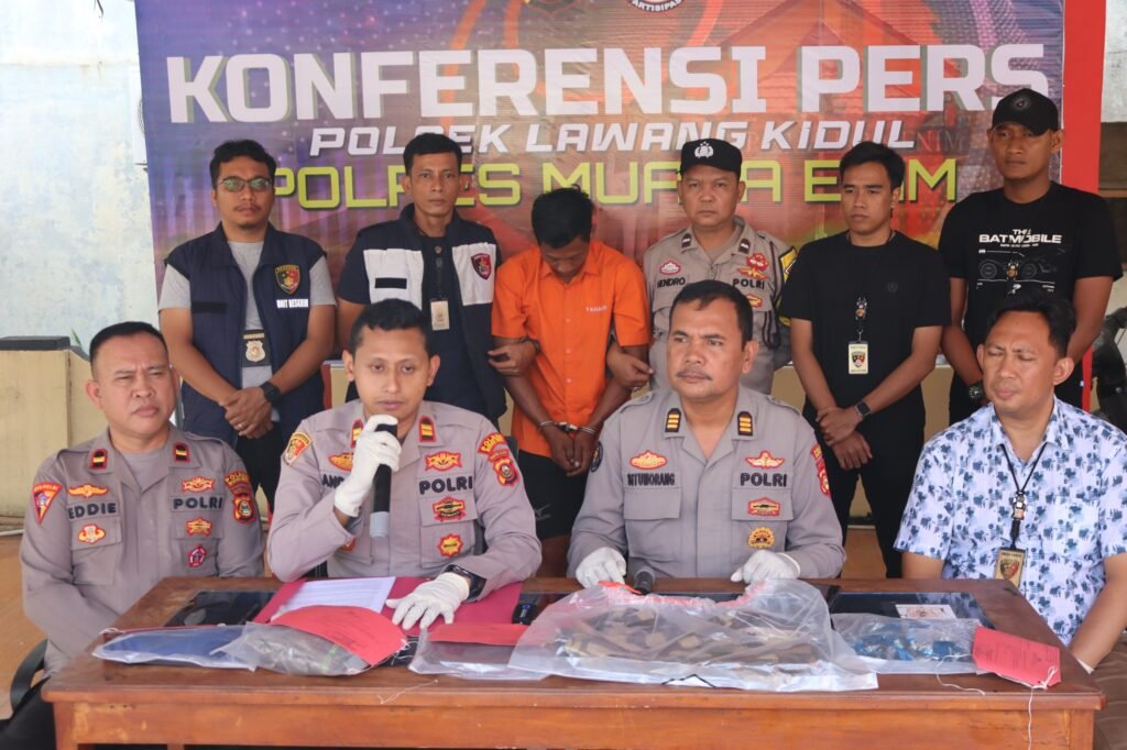 Dalam konferensi pers yang digelar di halaman Mapolsek Lawang Kidul pada Jumat (5/9/2025), Kasi Humas Polres Muara Enim, AKP RTM Situmorang mewakili Kapolres Muara Enim AKBP Jhoni Eka Putra, SH, SIK, MSi. Hadir pula Kapolsek Lawang Kidul IPTU Andaru Galuh Indratno, S.Tr.K, Waka Polsek Lawang Kidul Ipda Edi Susanto, Kanit Reskrim Ipda Noky Juliawan, SH serta jajaran personel Polsek Lawang Kidul.