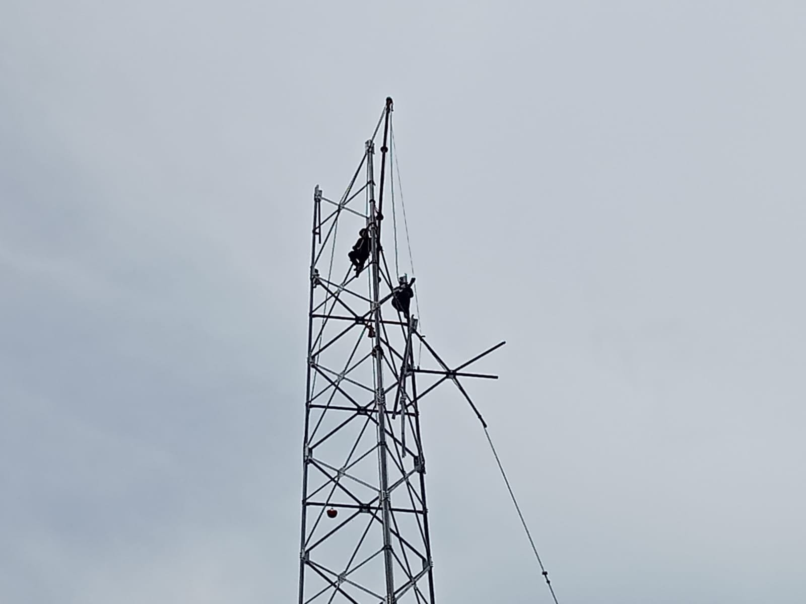 Seorang pekerja terlihat memanjat hingga puncak tower tanpa menggunakan helm pengaman. Saat dikonfirmasi, pengawas teknik di lokasi justru berdalih bahwa seluruh pekerja sudah memakai helm. Padahal, secara kasat mata jelas terlihat pekerja tersebut tidak menggunakan alat pelindung diri (APD).