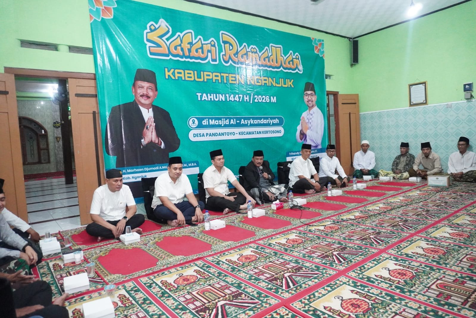 Tridayanews.id|Nganjuk – Bupati Nganjuk Dr. Drs. H. Marhaen Djumadi bersama Kapolres Nganjuk AKBP Suria Miftah Irawan dan Kasdim 0810 Nganjuk Mayor Cbi Ali Imron menghadiri Safari Ramadan 1447 H/2026 M di Masjid Al Iskandariah Desa Pandantoyo, Kecamatan Kertosono, Senin (2/3/2026).