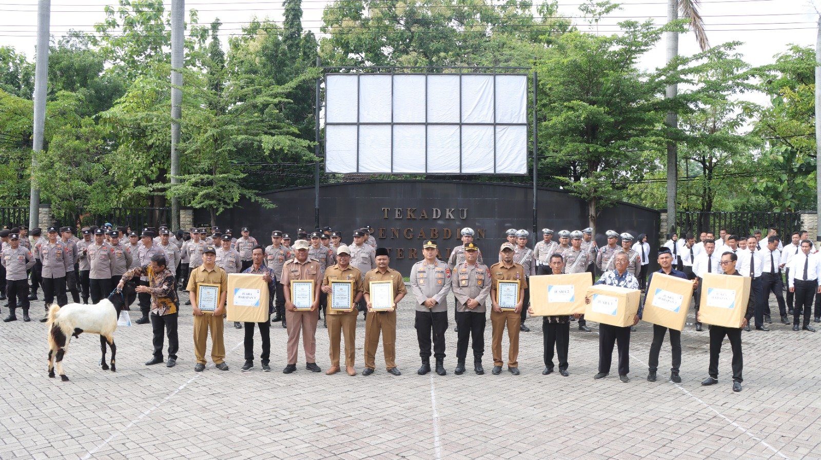 Tridayanews.id|Nganjuk – Polres Nganjuk menyerahkan hadiah kepada para pemenang Lomba Siskamling jajaran Polres Nganjuk dalam Apel Jam Pimpinan yang dipimpin langsung Kapolres Nganjuk AKBP Henri Noveri Santoso, S.H., S.I.K., M.M., di Lapangan Apel Polres Nganjuk, Senin (5/1/2026). Upacara tersebut diikuti Wakapolres Nganjuk, para pejabat utama (PJU), para perwira, anggota, serta ASN Polri.