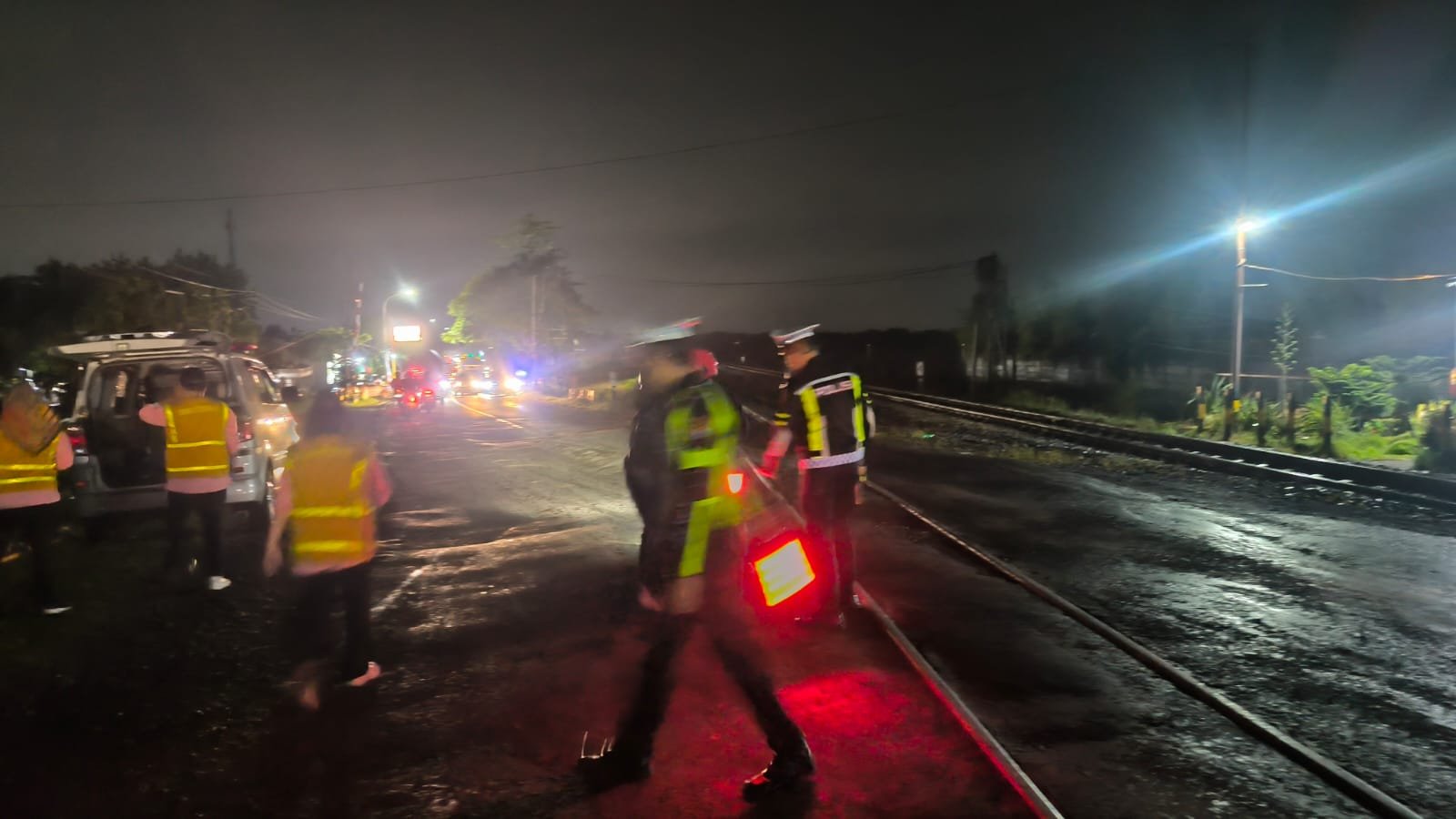 Ia menambahkan, dalam pengamanan yang dilakukan, petugas sempat mendapati beberapa pengendara sepeda motor yang terjatuh saat melintas di perlintasan tersebut. Personel yang berjaga bersama tim medis langsung memberikan penanganan pertama di lokasi kejadian.