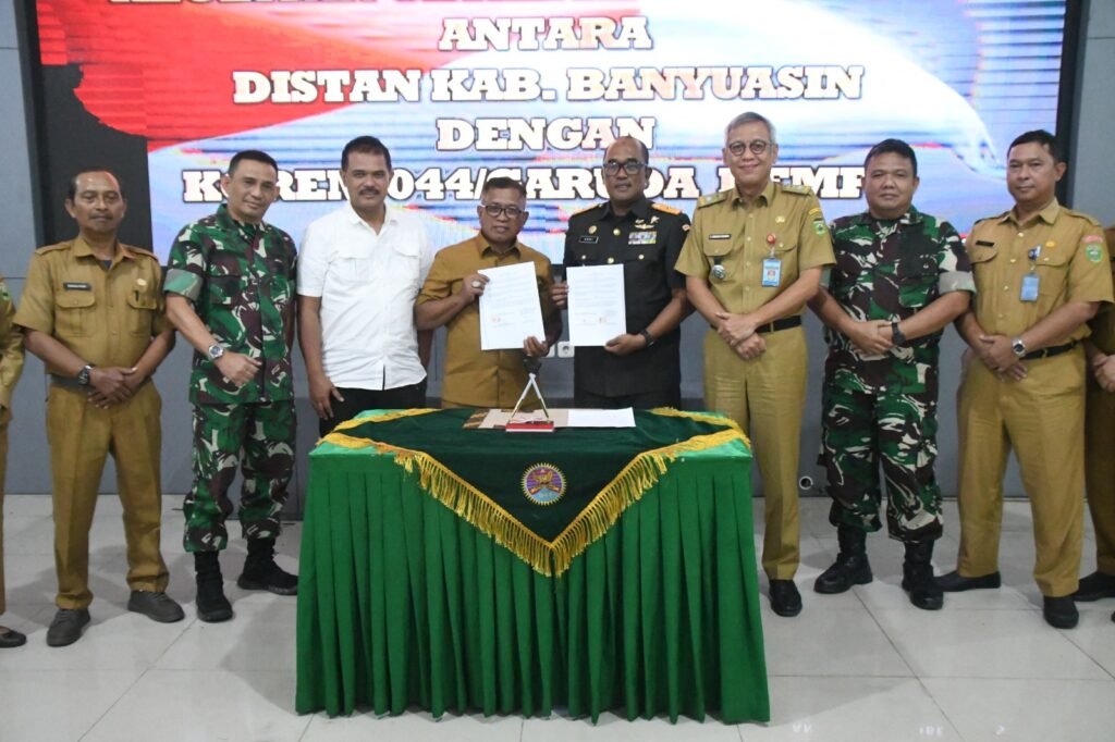 Palembang – Secara resmi Danrem 044/Gapo Brigjen TNI Adri Koesdyanto menandatangani kontrak kegiatan Cetak Sawah dalam rangka mendukung program strategis pemerintah di bidang ketahanan pangan nasional, acara digelar di Aula Makorem 044/Gapo Jl. Jend. Sudirman Km. 4 Kota Palembang, Selasa (14/10/2025).