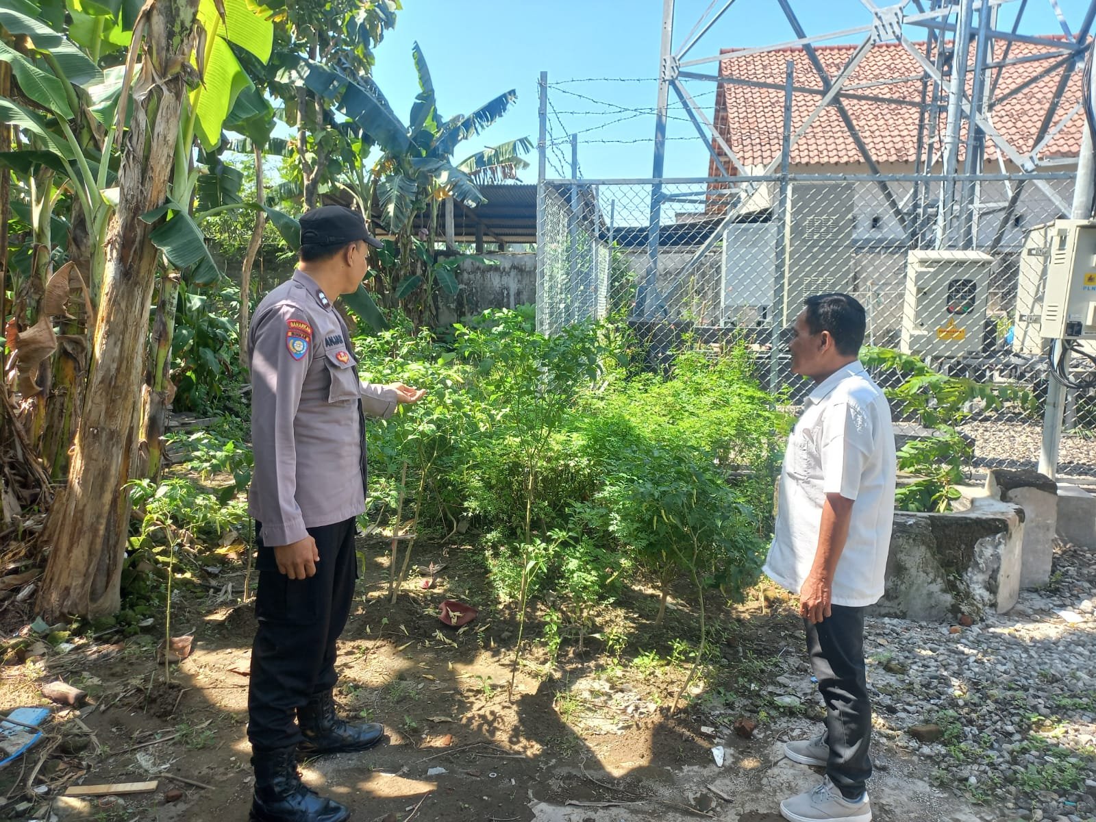 Di lapangan, Bhabinkamtibmas Desa Sugihwaras Aiptu Anjar Iswahyudi memantau perkembangan tanaman cabai dan terong milik Purwanto. Tanaman terlihat terawat dengan baik dan siap dipanen dalam waktu dekat.